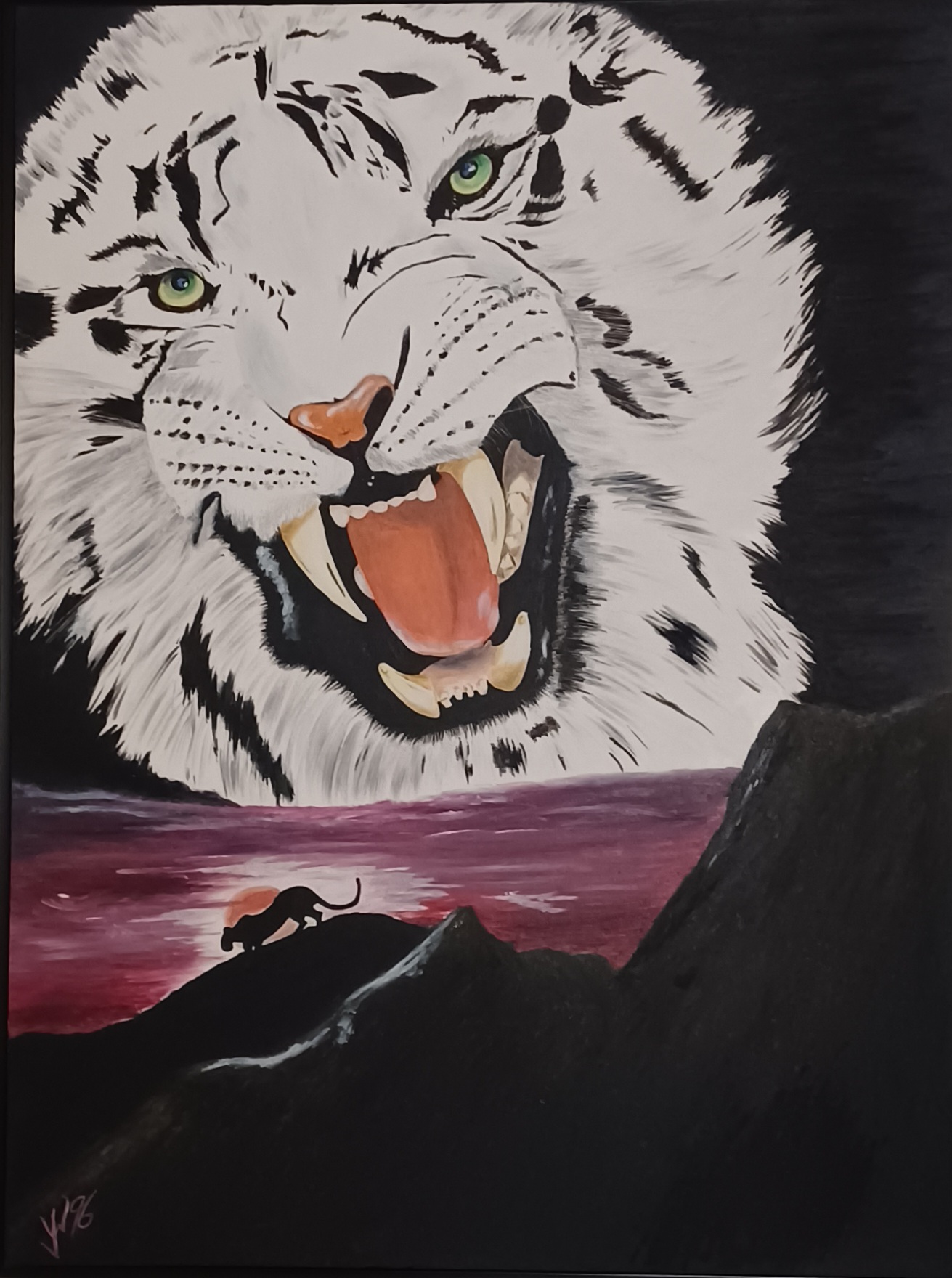 „BELLA“ Acryl auf Leinwand, 30X50. „AWAYKE“ Acryl auf Leinwand, 80X70„VATER UNSER“ Acryl auf Leinwand, 30X40.„WHITE TIGER“ ÖL auf Papier 46X58.„Venezianische Impression“ Öl auf Leinwand, 70X80 im vergoldeten Holzrahmen. „BIRD“ Aquarell auf Papier 17X17. „SALOME“ Acryl auf Papier, 70X100.„Wild horse“ Öl auf Leinwand 40X120. Referenzfoto: Pinterest