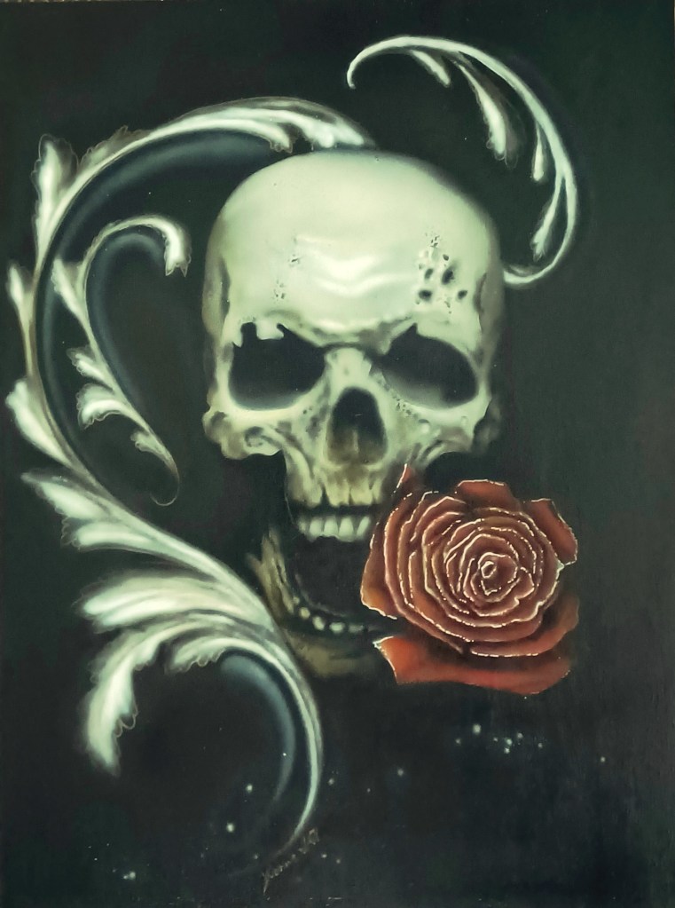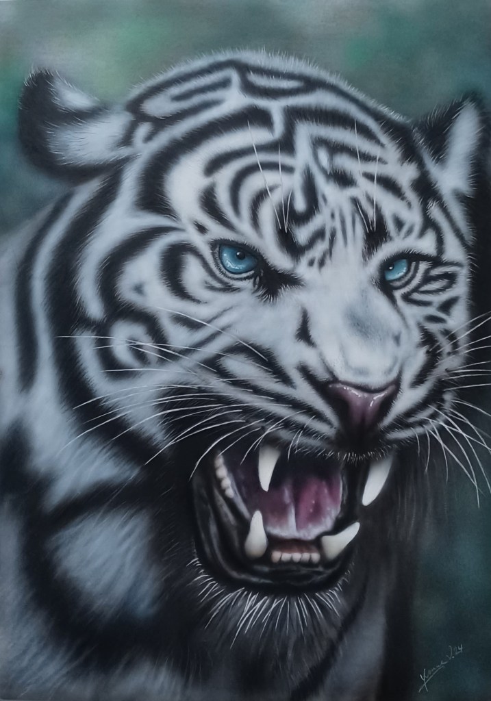 „Skull & rose“ Airbrush auf Metall 40X30.„PEACE“ AIRBRUSH auf ArtReflex Board 35X25. „White Tiger“ Airbrush auf ArtReflex Board 25X35. „Phanter“ Airbrush auf black paper 30X40.„TIGER EYE“ Airbrush auf ArtReflex Board 40X30. „WOLF“ Airbrush auf Leinwand 50X40. „HUSKY“ Airbrush auf Leinwand 24X30.„MEINE ZEIT STEHT IN DEINEN HÄNDEN “ Airbrush/Mischtechnik auf Leinwand 70X100. „SEA LIVE“ Airbrush auf Stoff 40X40.„UNDERWORLD“ AIRBRUSH auf WC-DECKEL. „HAWAII“ Airbrush auf Deko Holzboard.„TIER AUS DEM MEER“ Airbrush auf Metall 40X30.„TIER AUS DER ERDE“ Airbrush auf Metall 40X30. „FAITH“ Airbrush auf Karton.„Traumfänger Eule“ Airbrush auf Holz 13 cm Durchmesser. „Discover“ Airbrush auf Leinwand 120X80.„TRAUMINSEL“ Airbrush auf Leinwand 30X25.„HORSE EYE“ Airbrush auf Leinwand 20X20. „ZEBRA“ Airbrush/Mischtechnik auf Leinwand