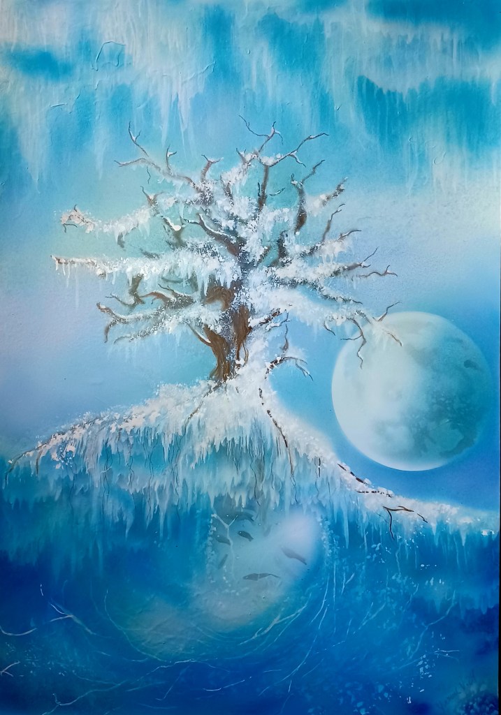 „Mystic Tree“ Airbrush auf Alcohol Ink Papier.