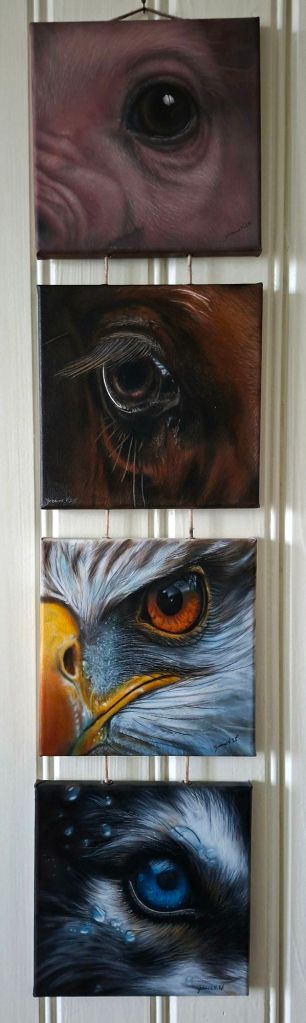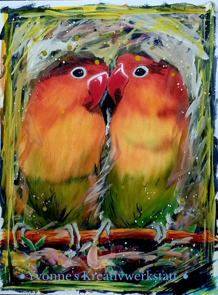 Dieses Bild habe ich ursprünglich vor Jahren mit Polychromos gamalt und später nochmals mit Airbrush und Pinsel überarbeitet. Das Vogelpaar symbolisiert für mich eine lebenslange Partnerschaft.