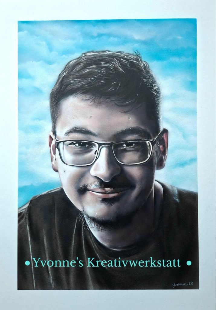 Dieses Portrait ist nach einer privaten Fotovorlage entstanden. Der Hintergrund habe ich nach eigener Interpretation abgeändert.