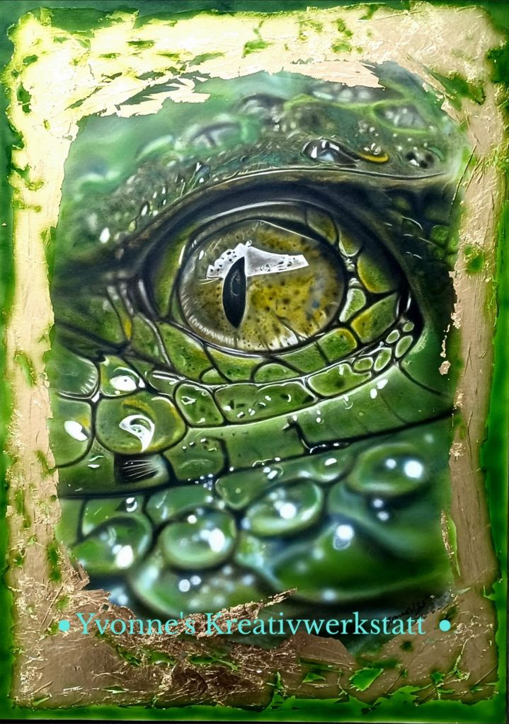 Bei diesem Bild liess ich mich inspirieren nach einer Vorlage eines Onlienwebinars mit Marissa Oosterlee, wollte aber mehr aus dem Bild herausholen und malte dazu Wassertropfen und verschönerte das Gemälde schliesslich mit einer Blattgoldverzierung am Rand. Referenzfoto: Pinterest.