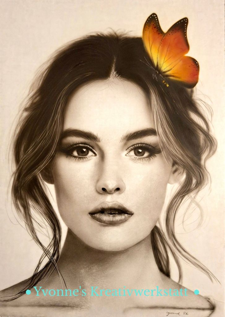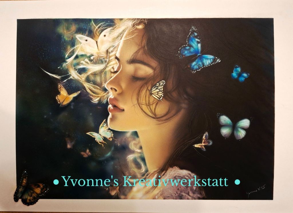 Die Vorlage für dieses Portrait stammt aus der Kreativbox Nr.13. Mit dem Schmetterling setzte ich noch einen besonderem Akzent, er steht für Transformation, Leichtigkeit, Wiedergeburt und die Schönheit des Wandels.