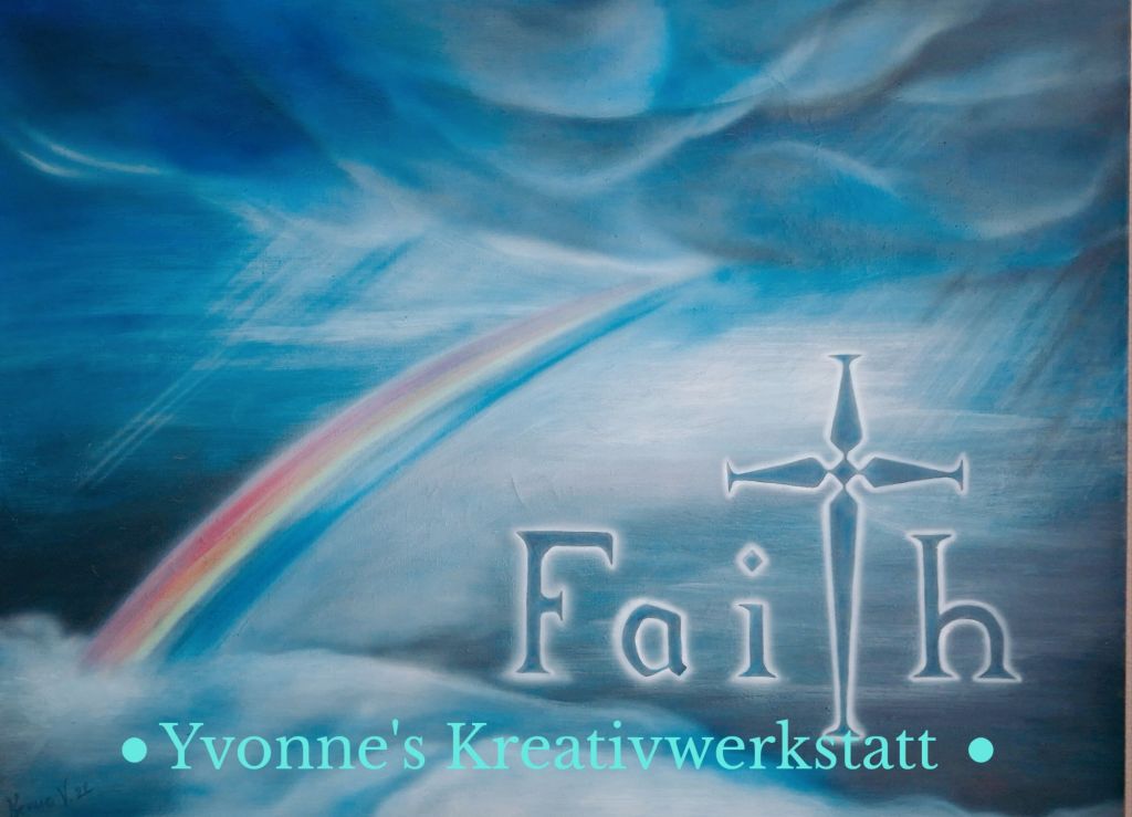 Dieses Bild ist enstanden nach einer Idee meines Partners, den Glauben in Form eines Regenbogens und dem Schriftzug darzustellen.